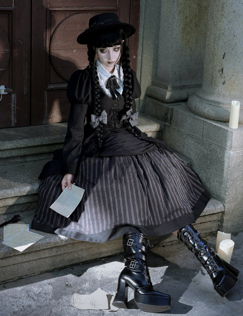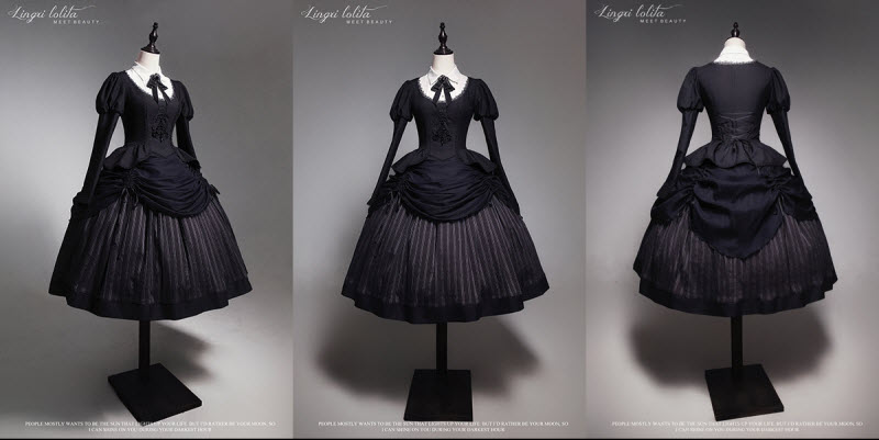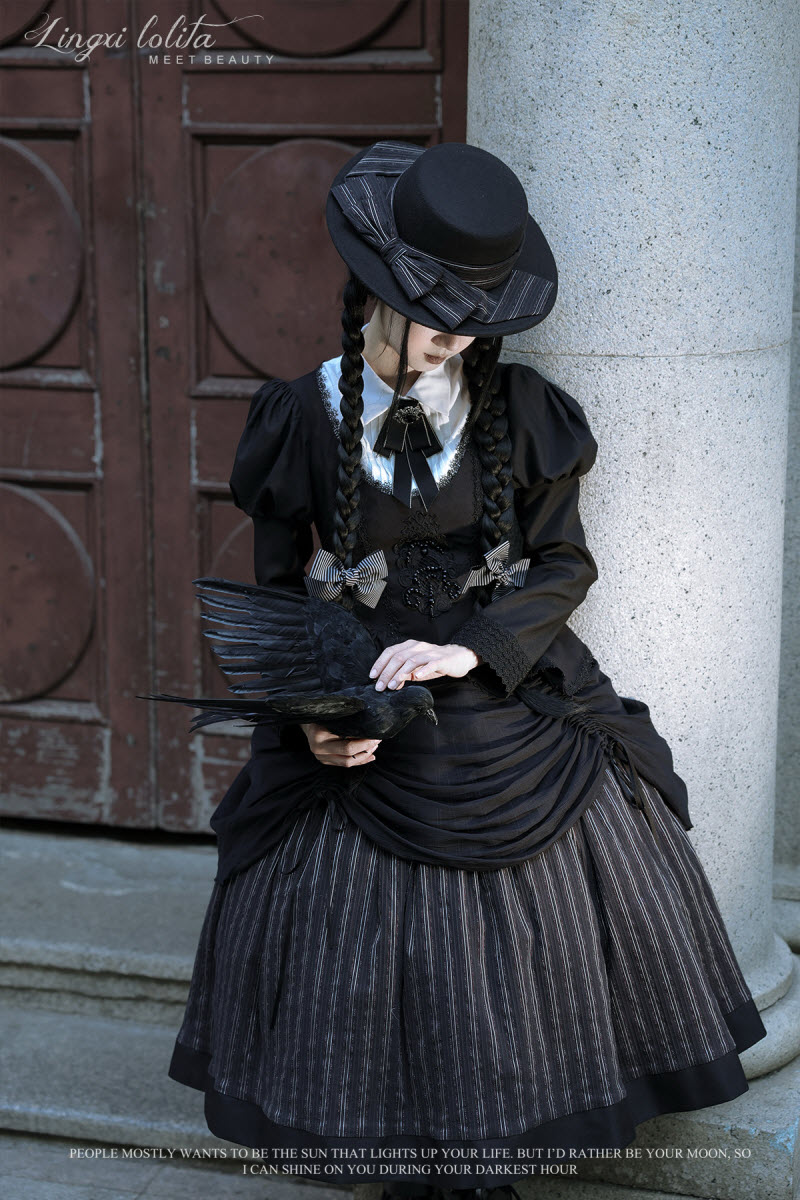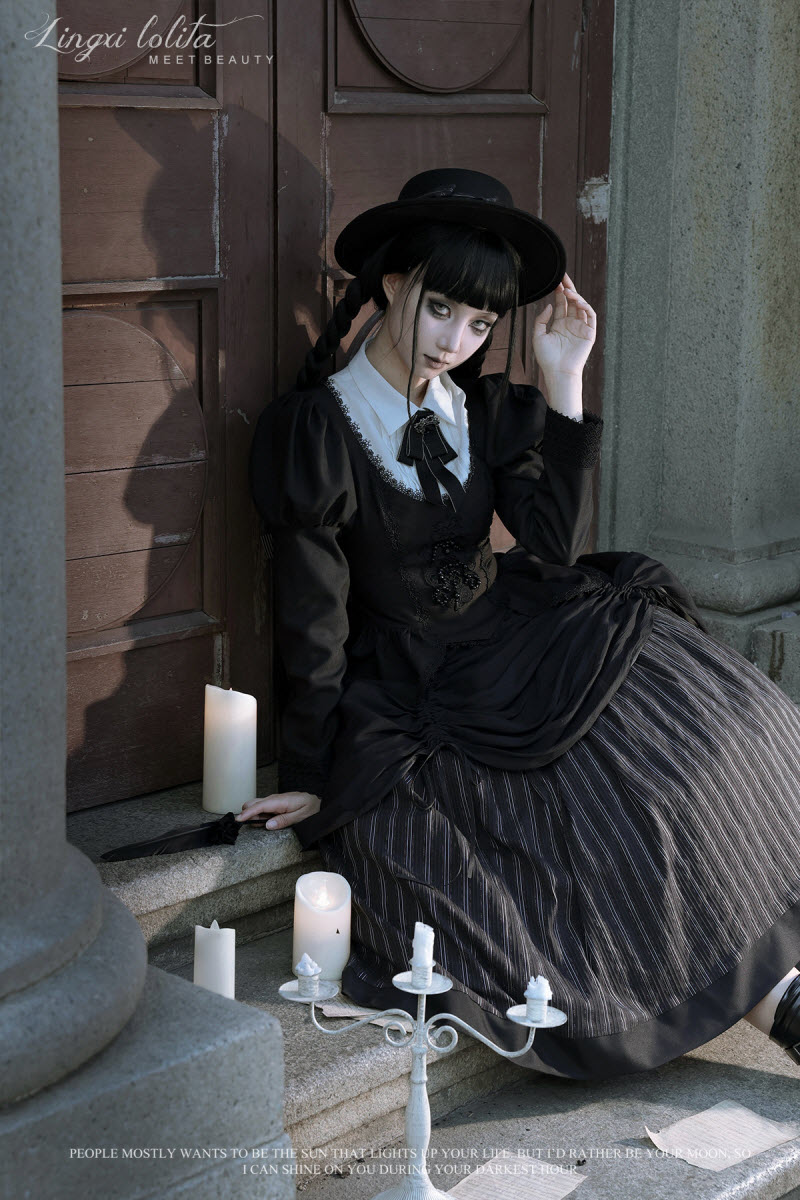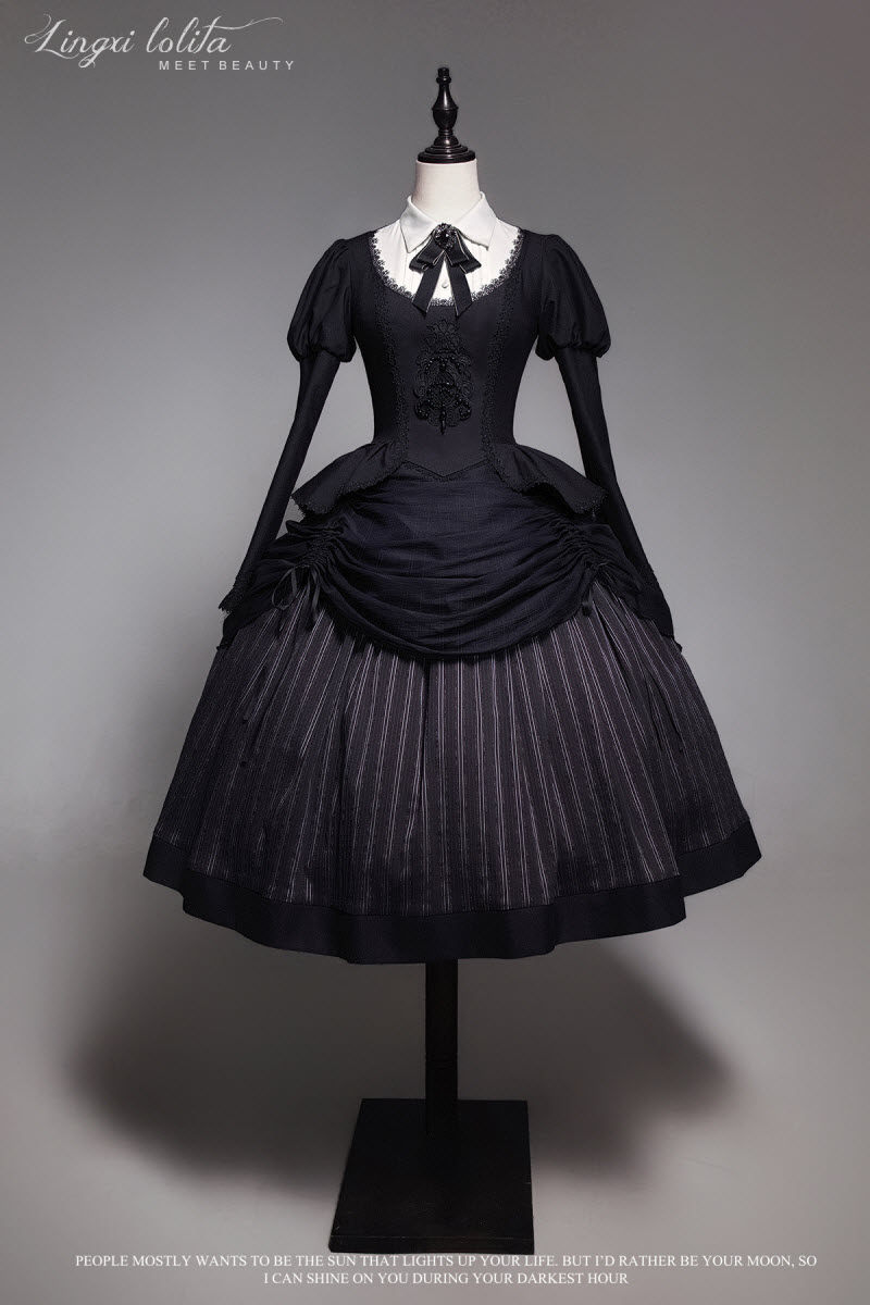 ◆ The Matching Neckbow and Hairclips are NOT included, they can be bought here >>> LingXi -Timeless Stripes- Vintage Classic Lolita Neckbow and Hairclips