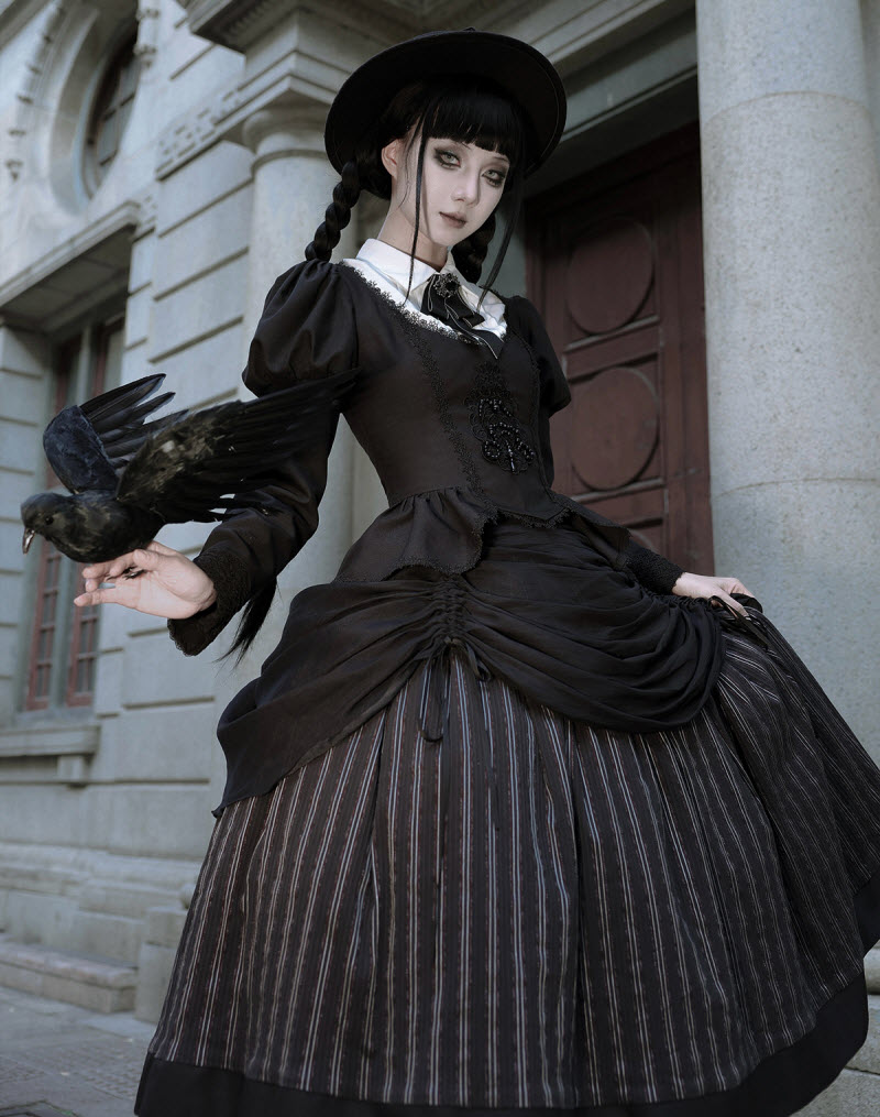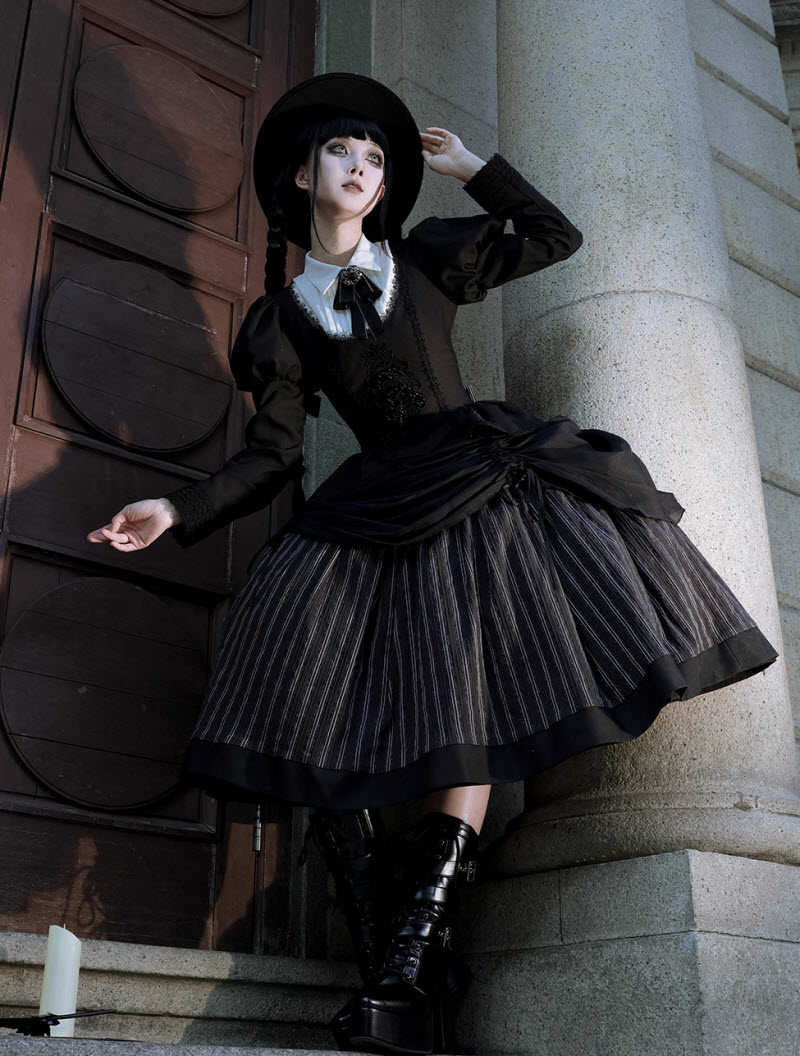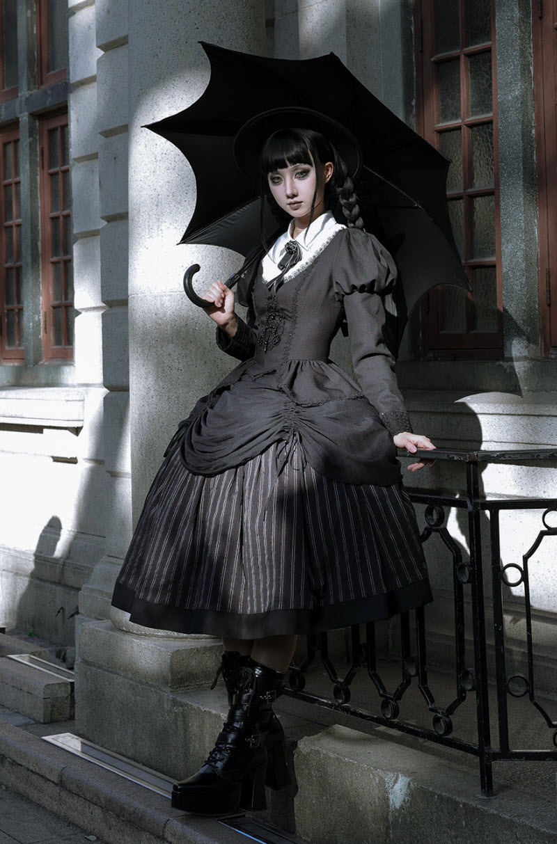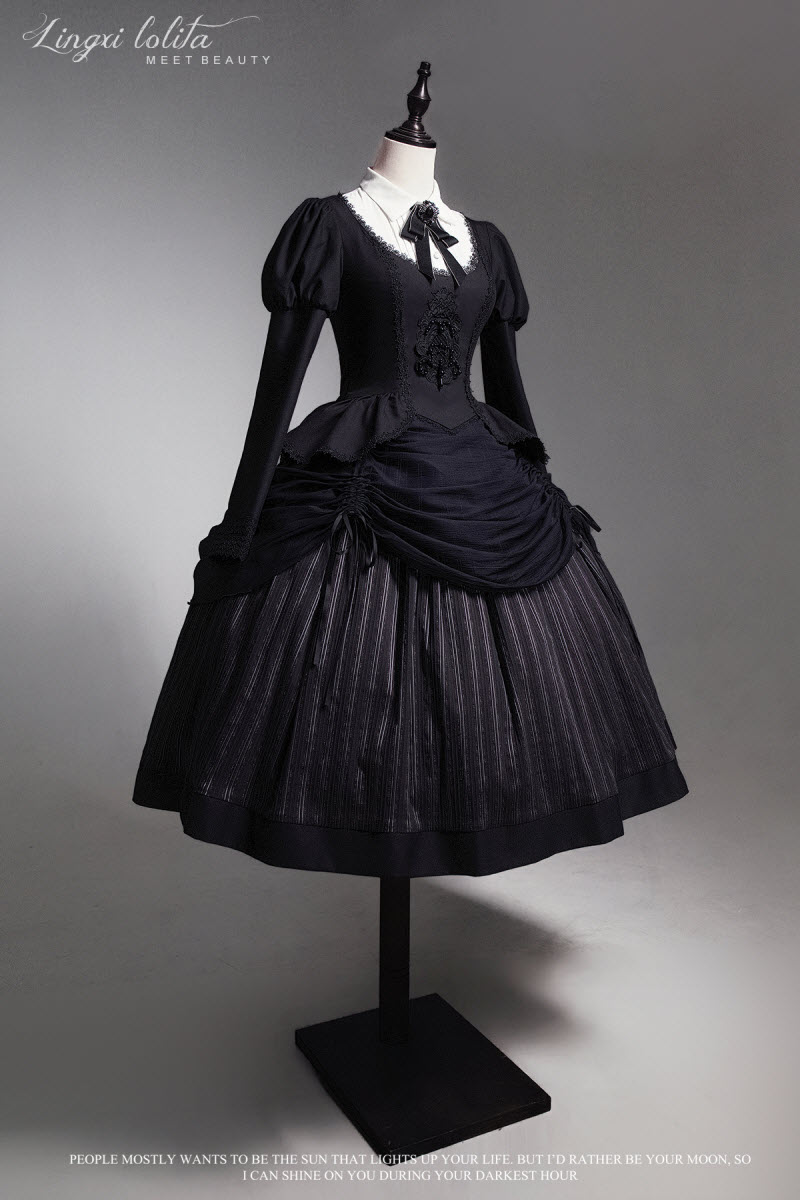 ◆ The Matching Neckbow and Hairclips are NOT included, they can be bought here >>> LingXi -Timeless Stripes- Vintage Classic Lolita Neckbow and Hairclips
