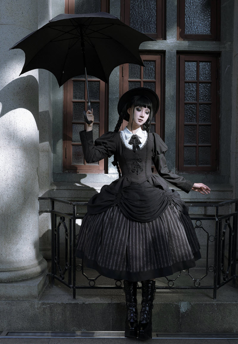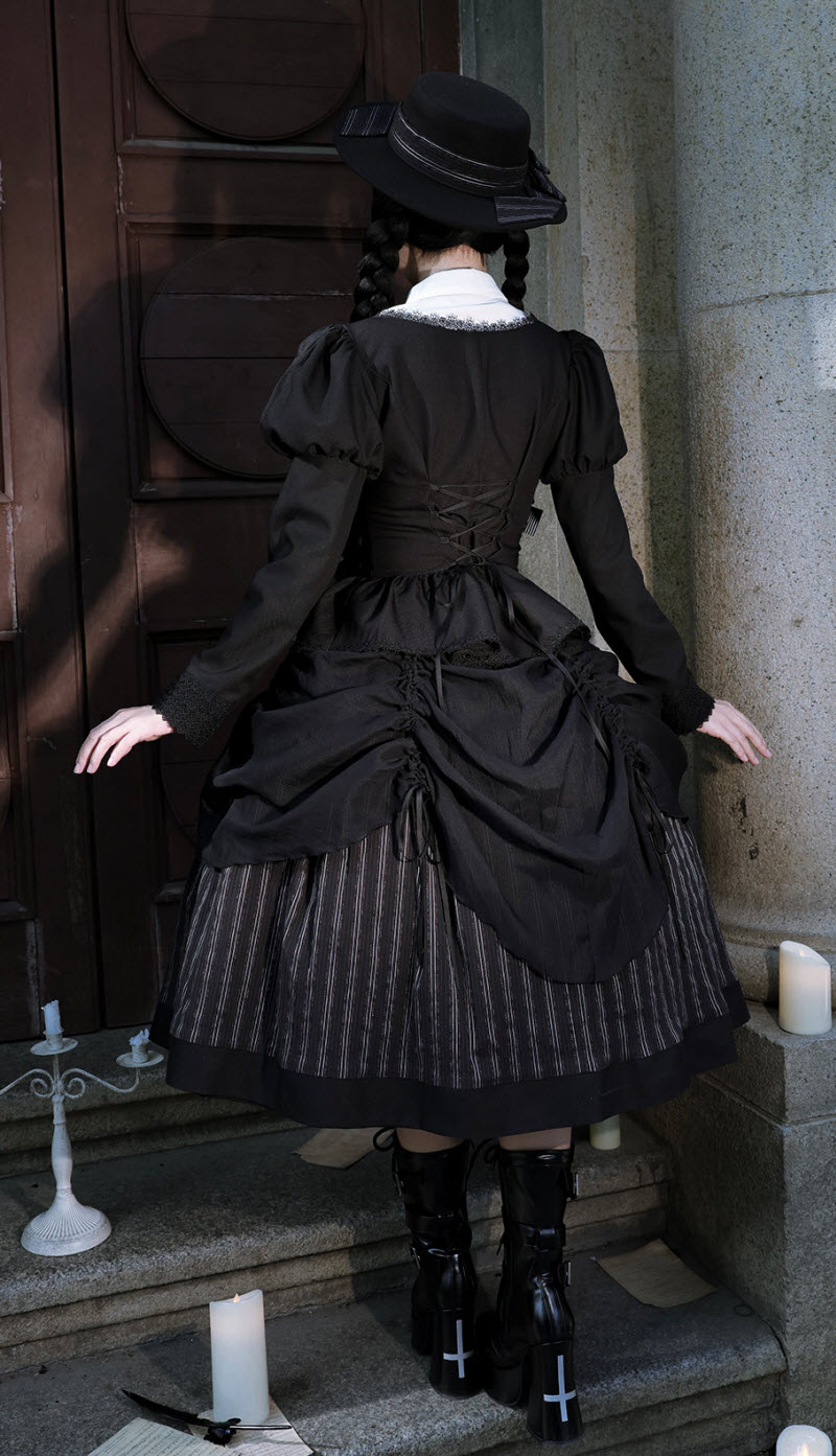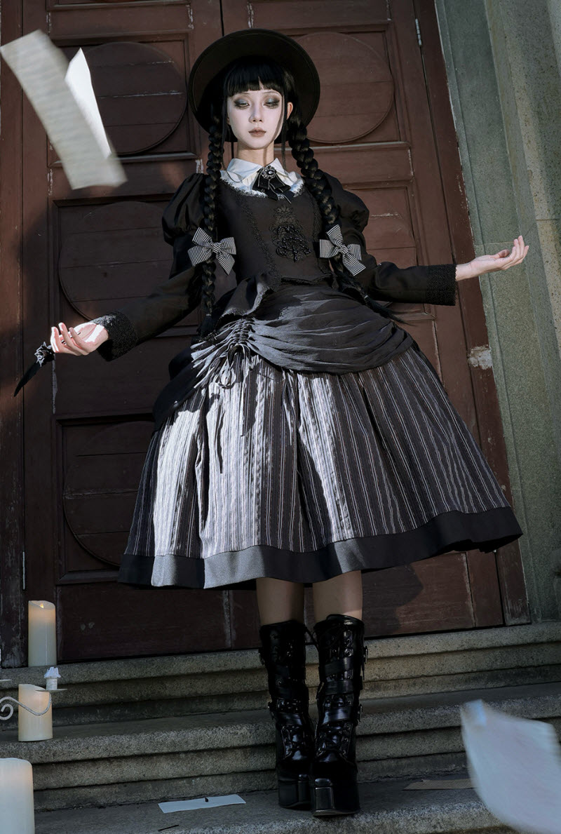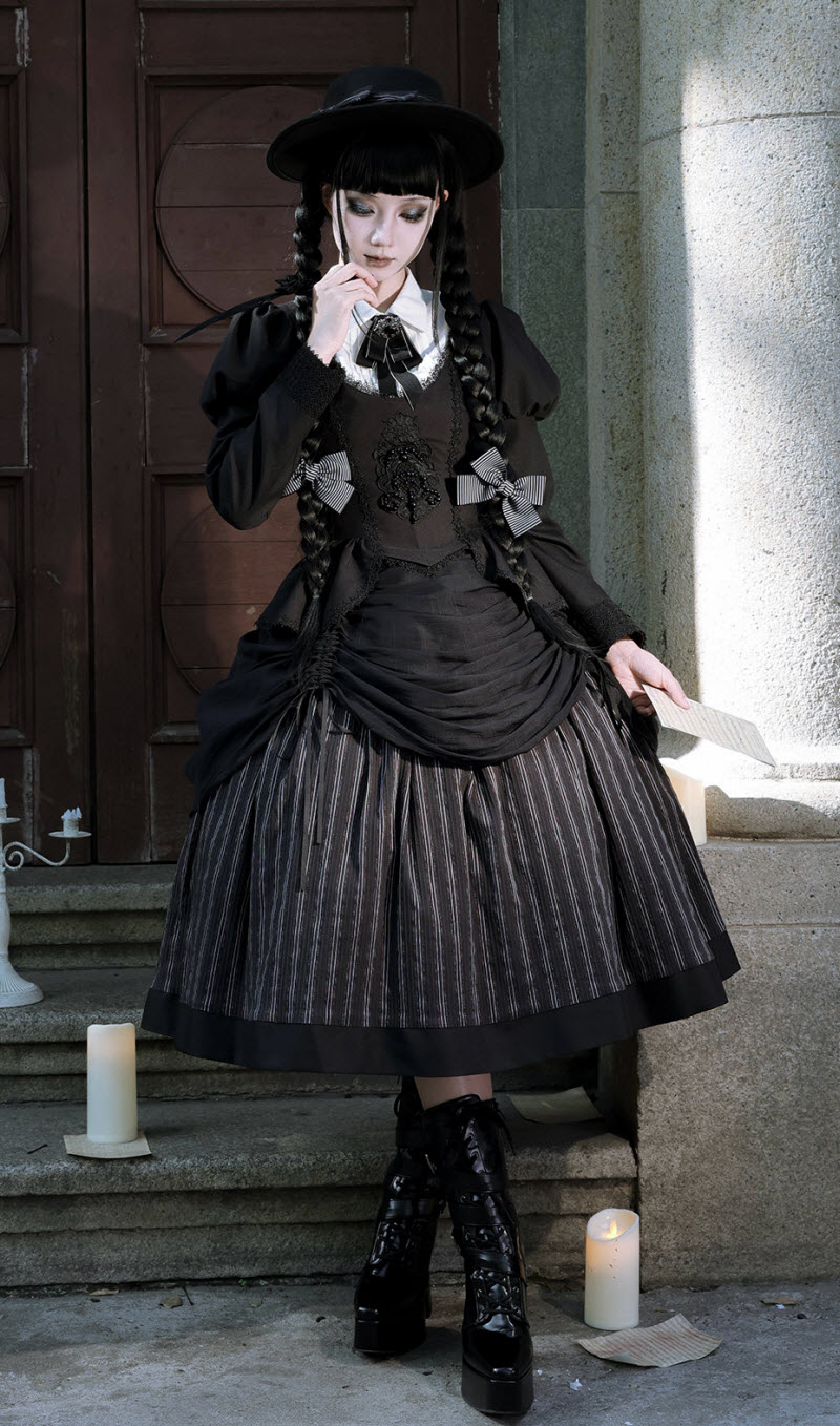 ◆ The Matching Neckbow and Hairclips are NOT included, they can be bought here >>> LingXi -Timeless Stripes- Vintage Classic Lolita Neckbow and Hairclips